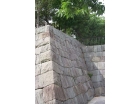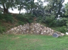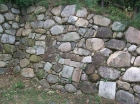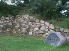発掘された石垣の一部には、自然石の野面積みに混じって、五輪塔などの台石が無造作に突っ込まれているのが、見えます。