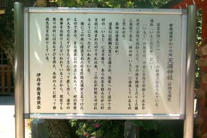 「臂岡(ひじおか)」という奇妙な名前を持った天神さんです。神社の前にある説明板によると、平安時代、菅原道真が罪を得て九州の太宰府に流される途中、この岡で休憩された。その時疲れたので、臂(ひじ)を枕にして昼寝をされたことから、この名前がついたということです。