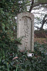 梅林の片隅に、表は「自然居士之墓」、裏には「嗚呼居士自性本然留迹此地無変無遷」と刻まれた墓石が立っています。