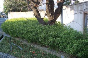 左側に植えられた笹は学名オカメザサと呼ばれるものです。有馬山の歌の笹をオカメザサとする学者もおられますので、御参考のため、併せて植えることにいたしました。