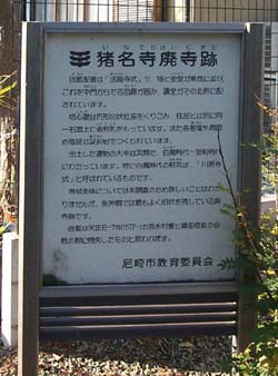 猪名寺の名称の由来は、猪名野のお寺から来たと言う説があるとのこと。