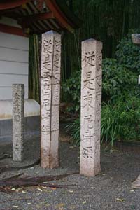 竹薮の中にある杜で「従是束尼崎領」の碑が建っています。