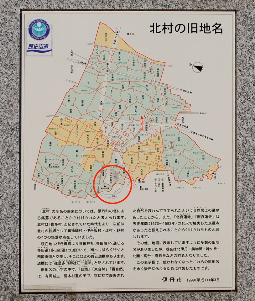 おそらく、大字北村小字神楽坂と大字伊丹小字奥谷の境界を指したものと推察しています。