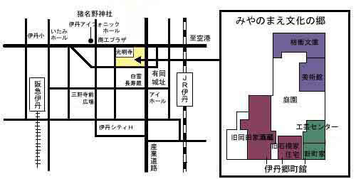 (財)柿衞文庫(昭和59年(1984)11月開館)、伊丹市立美術館(昭和62年(1987)11月開館)、伊丹市立工芸センター(平成元年(1989)11月開館)、旧岡田家酒蔵・旧石橋家住宅・新町家を配した伊丹市立伊丹郷町館(平成13年(2001)6月開館)の文化ゾーンを、平成13年(2001)6月から「みやのまえ文化の郷(さと)」として一般公開されています。