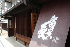 岡田家の廃業以前の敷地は、東西通りに南面して店舗とその東に臼屋、店舗の北に酒蔵、酒蔵の東北に接して千石蔵が建ち、東方の南北筋に面して居宅・庭園などを有する広大な敷地を所有していました。