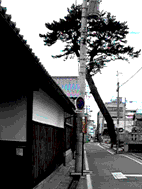 かつて、旧西国街道筋に風情を添えていた傾いた松ノ木は、天神社の入り口にあったが倒壊し、その切り株に名残をとどめていましたが、現在は別の木が植えられています。
