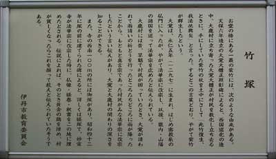 竹塚:当寺の門前に小さなお堂がある。これは大覚大僧正が手にした杖から根を出したと伝えられる古跡である。
