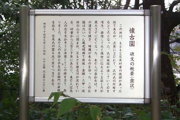 戦国時代、天正2年(1574)伊丹氏が滅び、そのあと伊丹城に入ったのは、織田信長の武将荒木村重で、伊丹城は有岡城と改称されました。