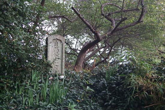 梅林の片隅に、表は「自然居士之墓」、裏には「嗚呼居士自性本然留迹此地無変無遷」と刻まれた墓石が立っています。