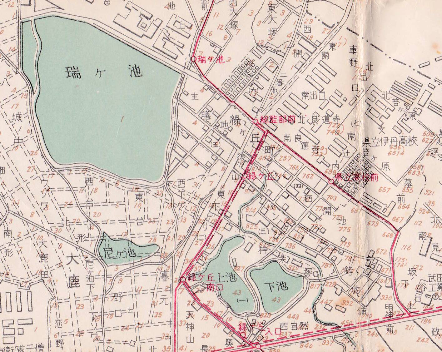 緑ヶ丘公園の上池、下池は大字伊丹の飛び地(伊丹字奥谷)でした。