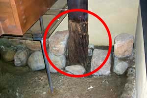 この搾り場が使われなくなったときに切断された男柱は、腐らず地下の構造が良く残っているため、保存処理をしてその上に接ぎ木をして復元されています。周囲の大きな石には、男柱が浮き上がらないようにする重しの役割を持っています。