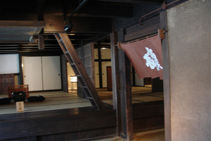 店舗の第1次改造は、松屋与兵衛の代の正徳5年(1715)ごろに住宅を店舗に改めたと考えられています。背面通りの居室と広敷の床および2階を撤去し、表座敷を2室に分け、広敷・土間境に窓付きの間仕切りを設けられました。更に西側面に小突出し部を増築しました。