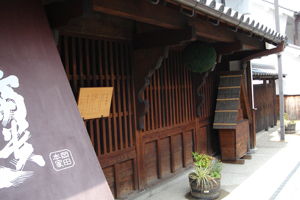 この店舗の最初の所有者は、松屋与兵衛でした。店舗の北に建つ酒蔵は正徳5年(1715)ごろに増築され、酒造をおこなったものと考えられています。
