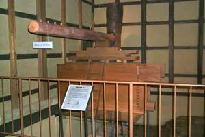 酒蔵から発掘された酒搾り遺構は、使われなくなったときに切断された男柱が腐らず地下の構造が良く残っていたため、保存処理をしてその上に接ぎ木をして復元されています。
