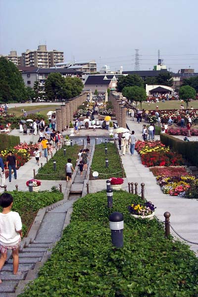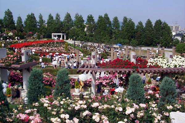 伊丹市の北部、荒牧にバラ公園があります。世界中のバラ約200種1万本が園内一帯に咲き誇っています。開花の最盛時期は5~6月と10~11月です。開花情報園内には3本柱が立っている下に地下ホールがある平和モニュメントもあります。