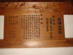 御祭神:大己貴命、熊野皇大神、天照皇大神、応神天皇、豊受姫大神