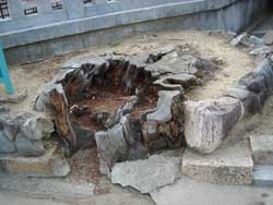 かつて、旧西国街道筋に風情を添えていた傾いた松ノ木は、天神社の入り口にあったが倒壊し、その切り株に名残をとどめていましたが、現在は別の木が植えられています。