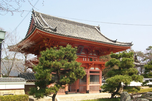 往時は四町四面に七堂伽藍の備わった摂津第一の巨刹であったといわれ、現在の山門は第二門で、第一門は尼崎市の富松神社近くにあったといい、方五十町歩の土地を有したと伝えられている。